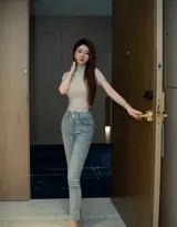 逛街的过程中,雨儿穿梭于繁华的街道和静谧的小巷之间,她的每个动作都自然而不造作。无论是驻足观看橱窗里的商品,还是与朋友轻声交谈,她的身姿都显得优雅动人。紧身牛仔裤在这时成为她的最佳搭档,不仅凸显了她纤细的腰身和笔直的双腿,还增添了一份随性的时尚感。雨儿的清纯长相与这种休闲装扮形成鲜明对比,让人感受到一种反差美——甜美中带着一丝飒爽,苗条中透出健康活力。街拍镜头捕捉下的她,仿佛是一幅动态的画作,记录着城市生活中的美好瞬间。