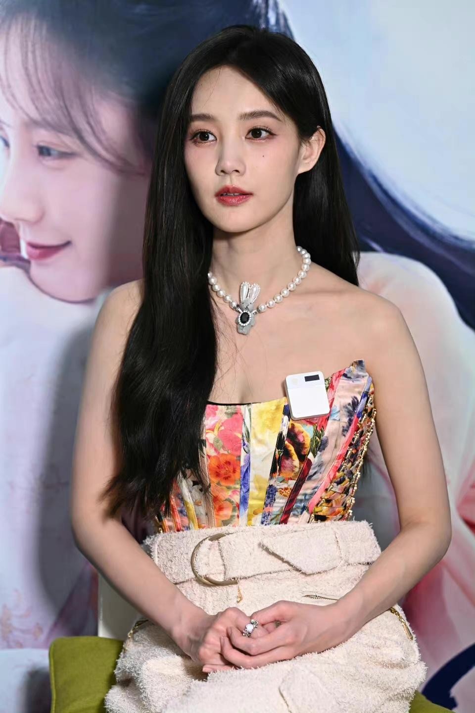李一桐散发从容自信气场,简约背景下聚焦于其优雅姿态与高级质感